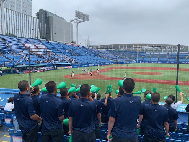 野球場応援席をスクールカラーのTシャツで「緑色の一体感」を出して野球部員に力強いエールを送りましょう!