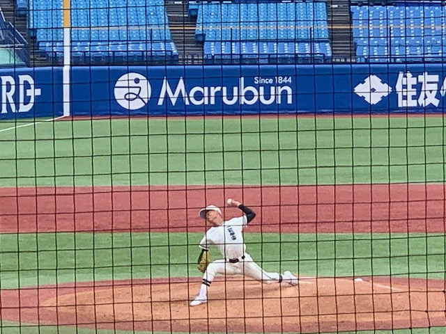 左腕から繰り出されるストレート、変化球すべてが初登板とは思えない落ち着きと安定感で初回からゲームメイク。初戦の川島選手とともに今夏を戦っていくうえで大きな勇気を与えてくれました。