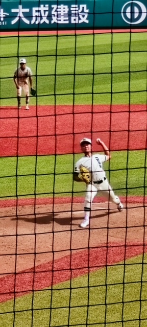 昨年の対帝京高校戦以来の先発マウンドでしたが、左腕から繰り出される伸びのあるストレートと変化球のコンビネーションが冴えわたり、8回1/3を2失点に纏める好ピッチング!長い戦いの中で、素晴らしい投球を見せてくれました。