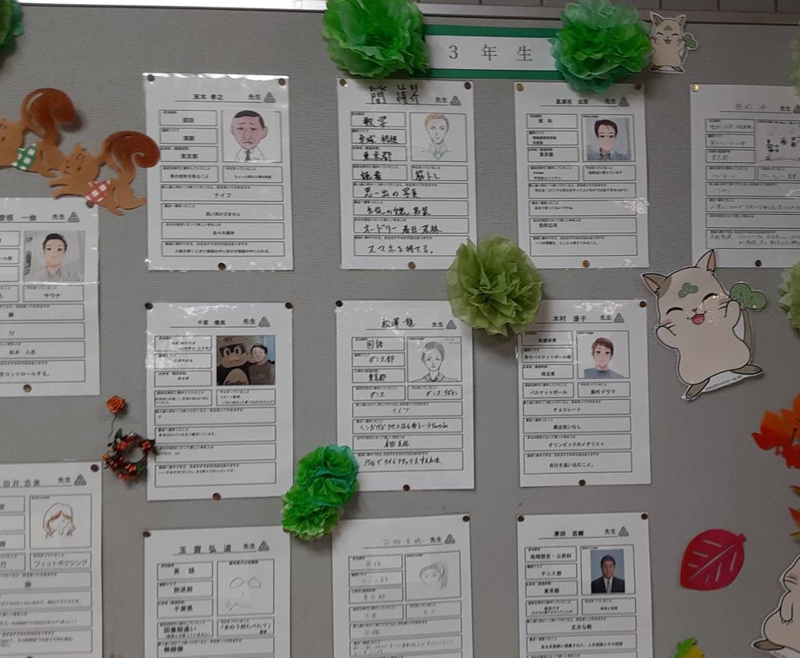 >「令和3年度 二松学舎祭」In The Future~羽ばたけ二松の翼~が開催されました。 「令和3年度 二松学舎祭」In The Future~羽ばたけ二松の翼~が開催されました。 父母の会「二松祭委員会」は、二松学舎祭前日準備(先生紹介の展示活動)をいたしました。 本年は生徒さんに向けて、写真やイラストを入れて先生紹介をいたしました。 二松祭委員の皆様、ありがとうございました。