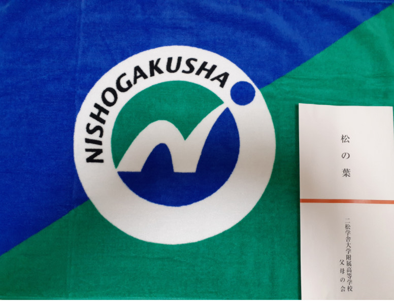 父母の会から一年生へ、二松学舎マフラータオルを贈呈しました。